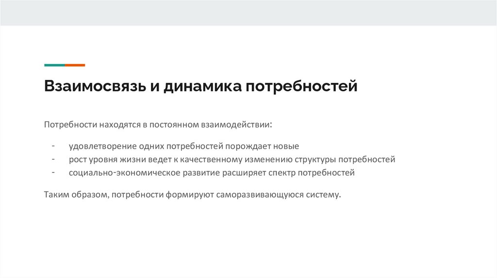 Взаимосвязь и динамика потребностейПотребности находятся в постоянном взаимодействии: