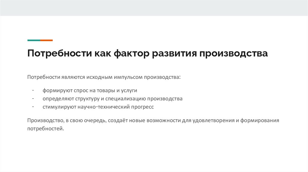 Производство, в свою очередь, создаёт новые возможности для удовлетворения и формирования