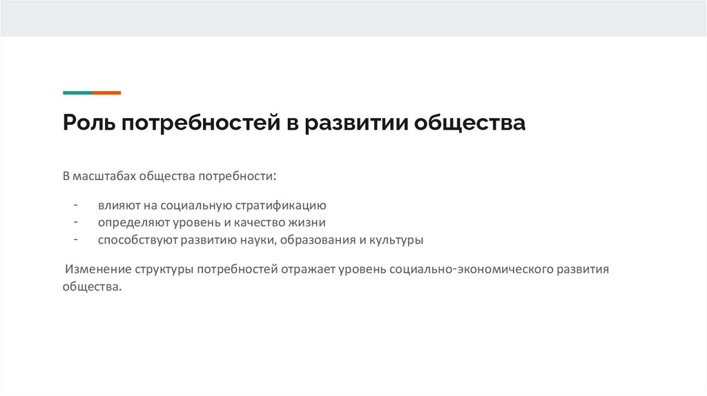 Роль потребностей в развитии обществаВ масштабах общества потребности: