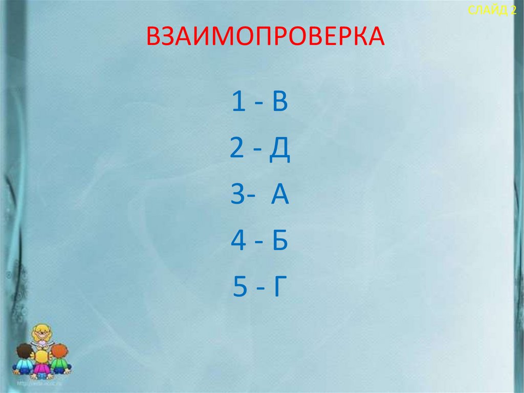 СЛАЙД 2ВЗАИМОПРОВЕРКА