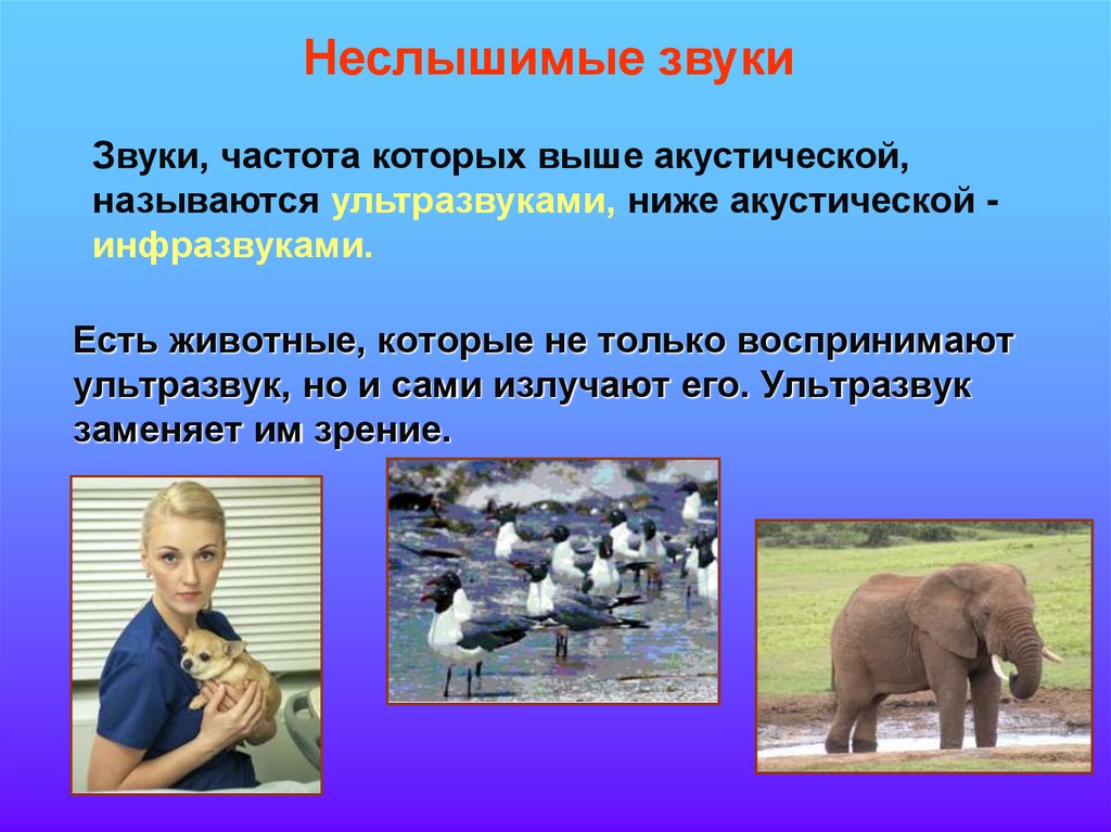 Неслышимые звукиЗвуки, частота которых выше акустической,