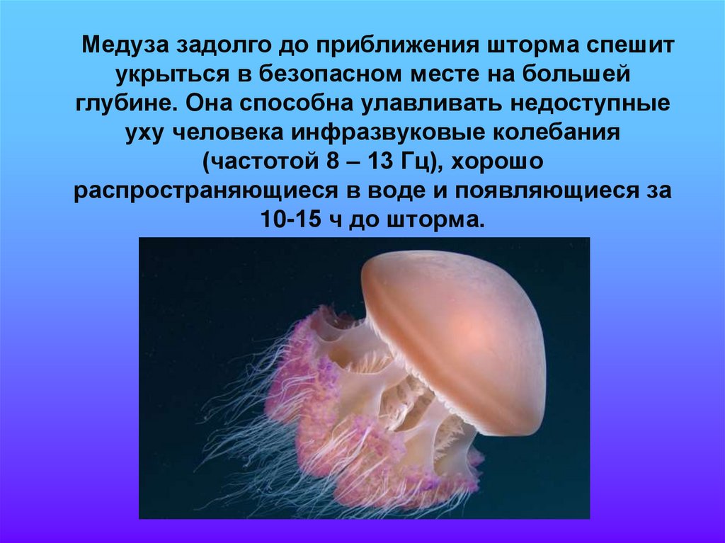 Медуза задолго до приближения шторма спешитукрыться в безопасном месте на большей