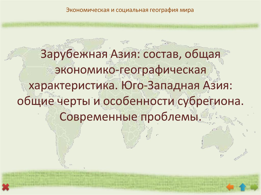 Экономическая и социальная география мираЗарубежная Азия: состав, общая
