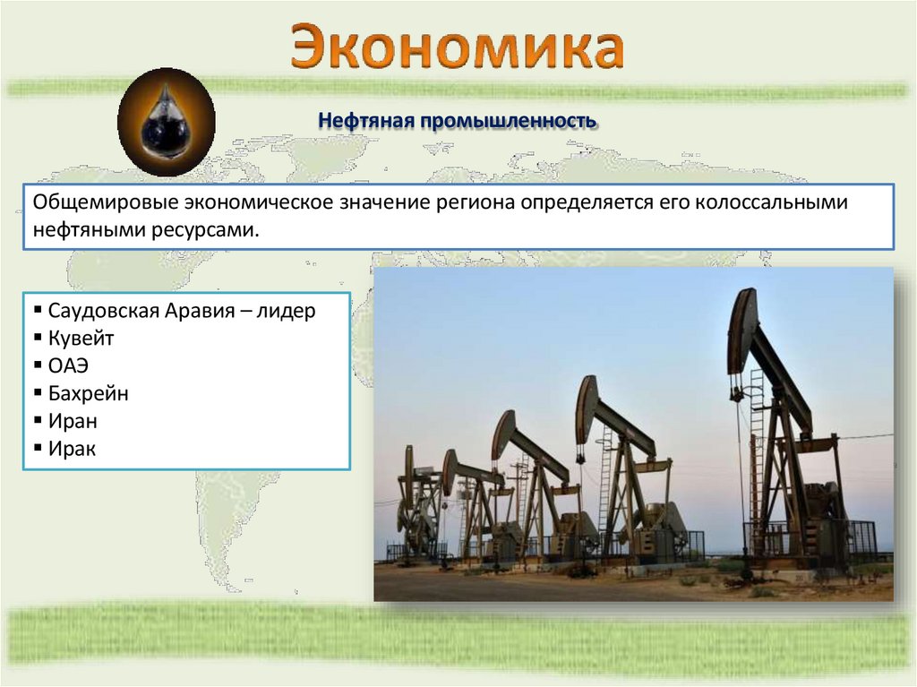 Нефтяная промышленностьОбщемировые экономическое значение региона определяется его колоссальными