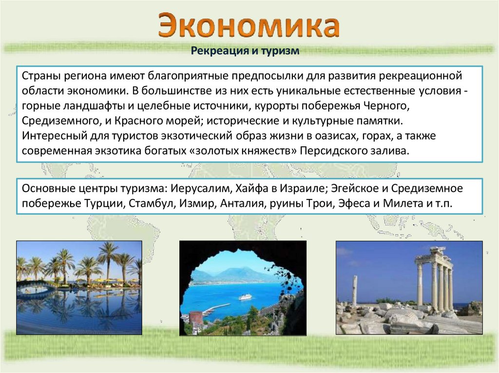 Израиля, Кипра, Турции. Поэтому ведущей отраслью экономики многих стран