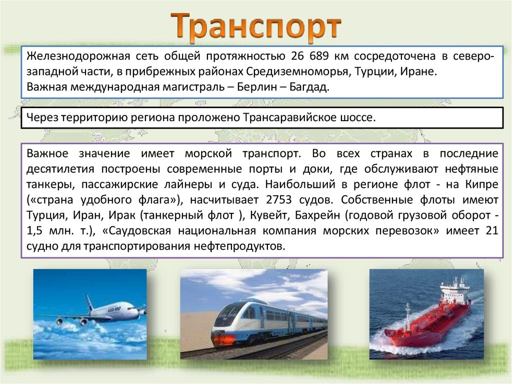 Важное значение имеет морской транспорт. Во всех странах в последние
