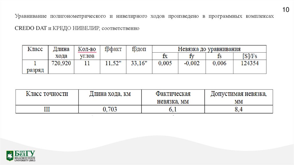 Уравнивание полигонометрического и нивелирного ходов произведено в программных комплексахCREDO DAT и КРЕДО НИВЕЛИР, соответственно