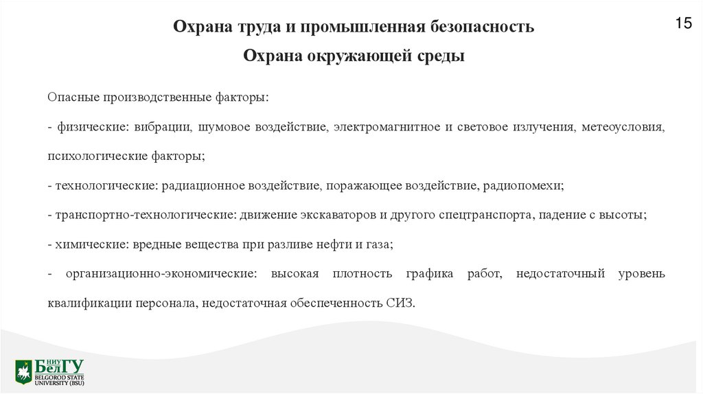 Охрана труда и промышленная безопасностьОхрана окружающей среды
