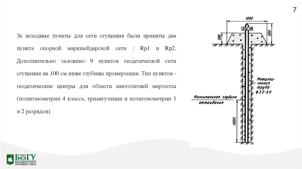 сгущения на 100 см ниже глубины промерзания. Тип пунктов геодезические центры для области многолетней мерзлоты