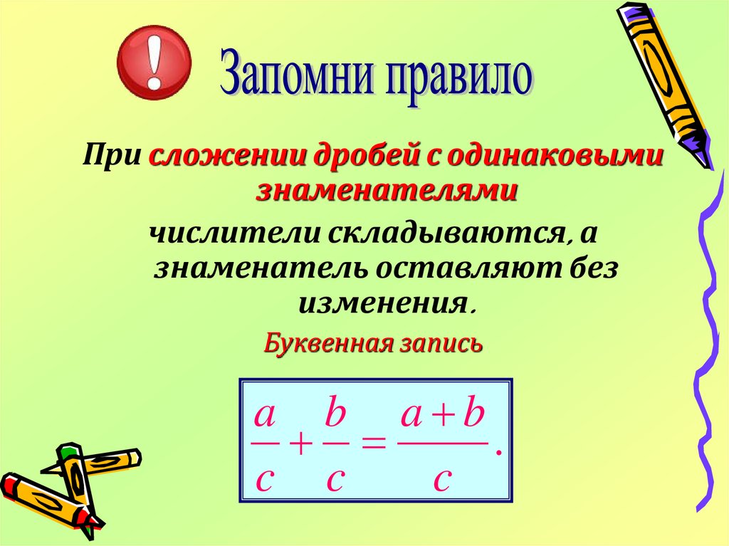 При сложении дробей с одинаковымизнаменателями