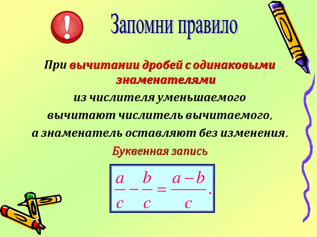 При вычитании дробей с одинаковымизнаменателями