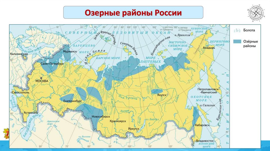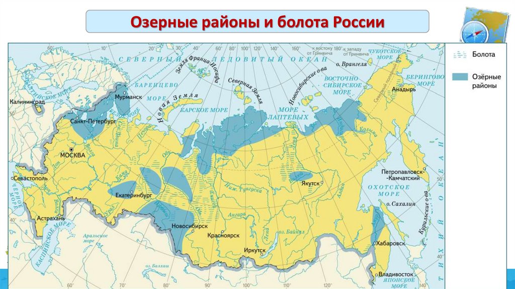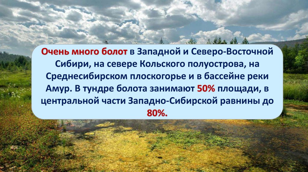 Очень много болот в Западной и Северо-ВосточнойСибири, на севере Кольского полуострова, на