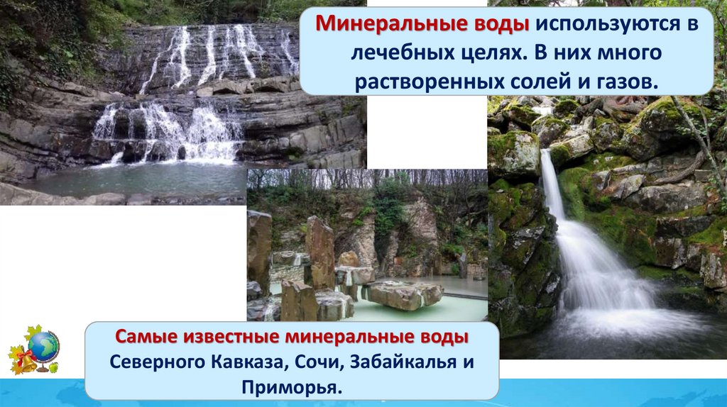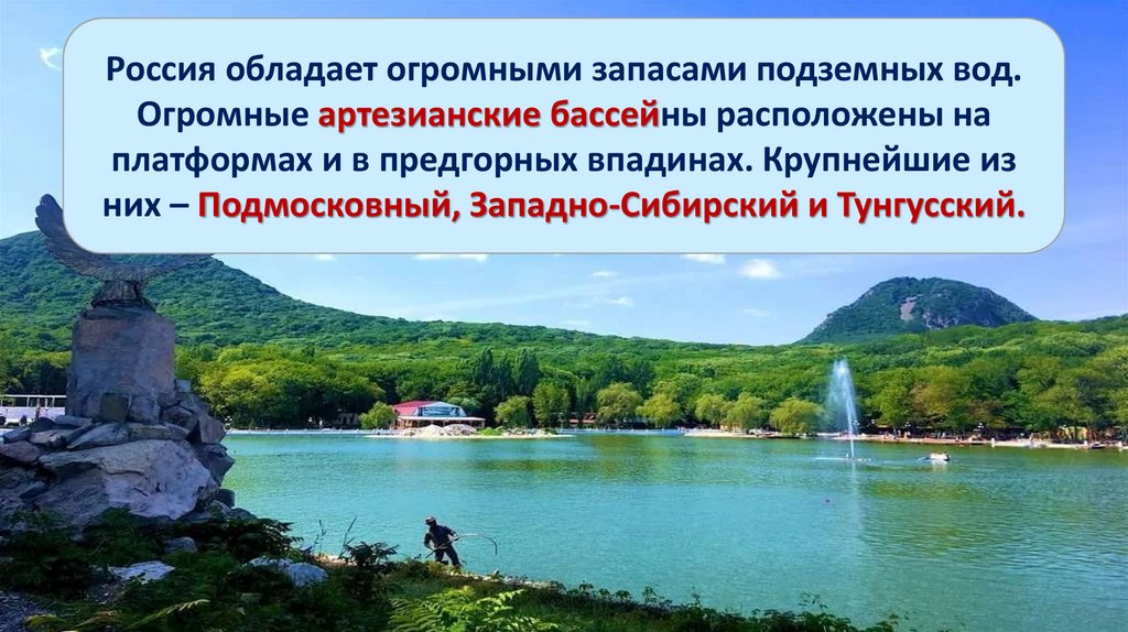 Россия обладает огромными запасами подземных вод.Огромные артезианские бассейны расположены на