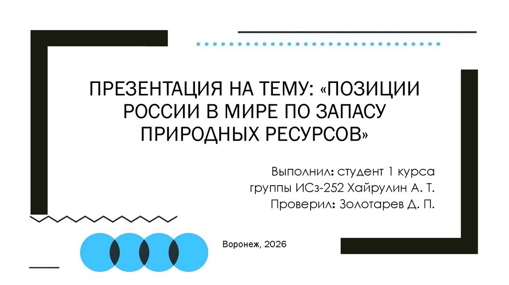 1. Презентация на тему: «позиции России в мире по запасу природных ресурсов»