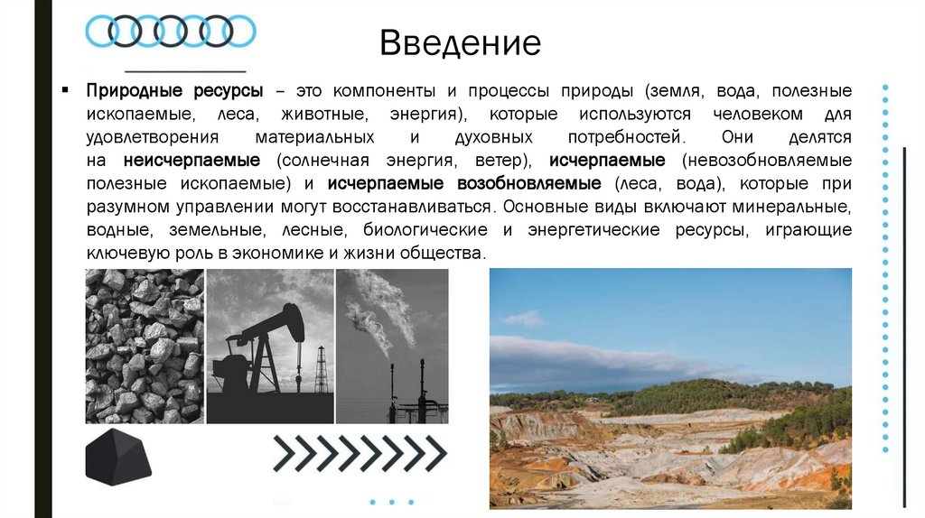 ВведениеПриродные ресурсы – это компоненты и процессы природы (земля, вода, полезные