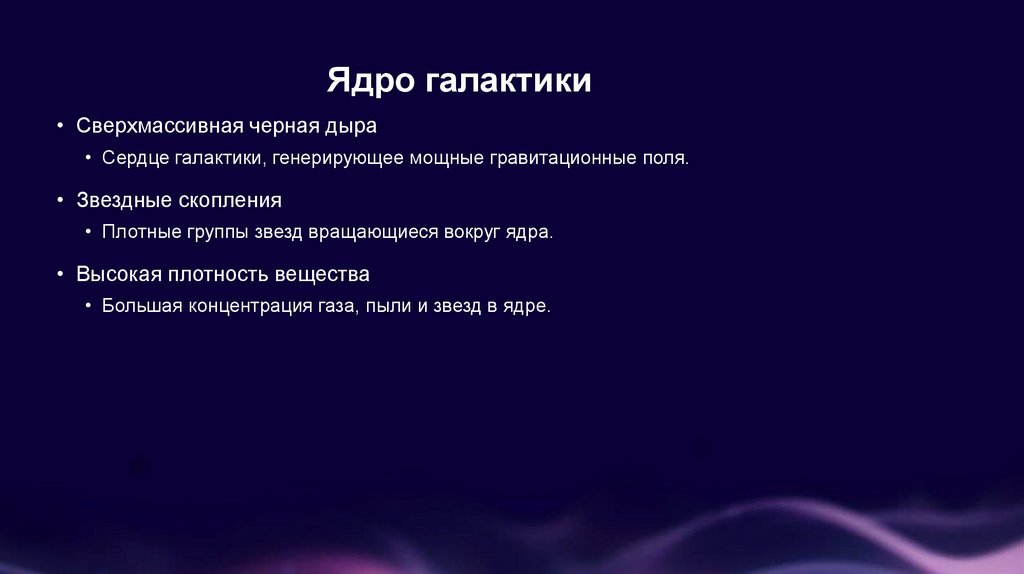 • Сердце галактики, генерирующее мощные гравитационные поля.