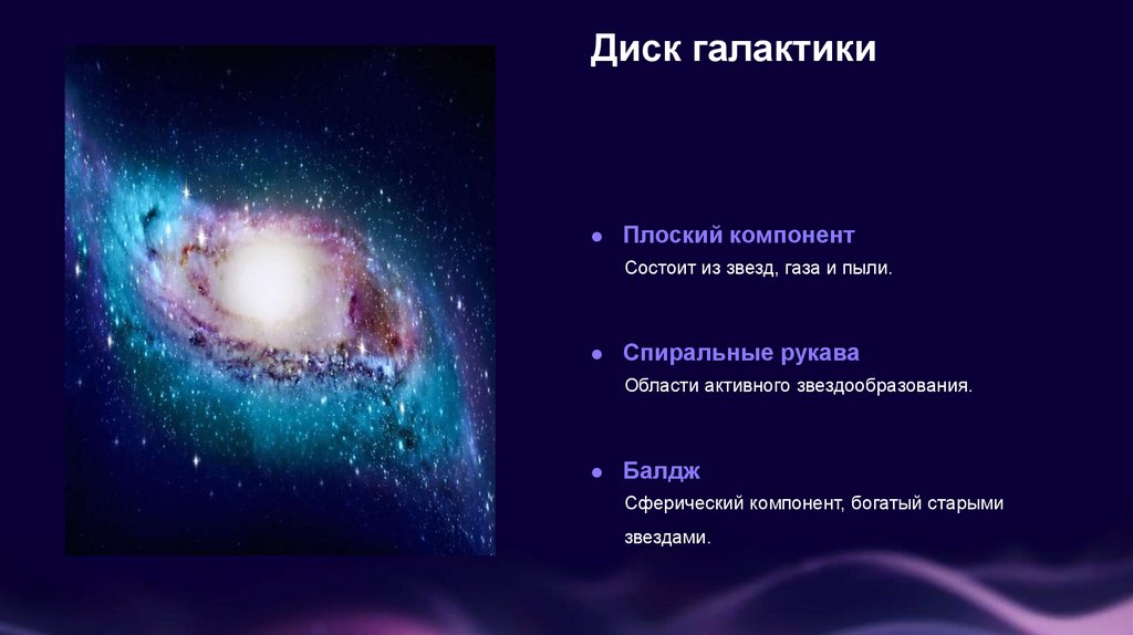 • Плотные группы звезд вращающиеся вокруг ядра.
