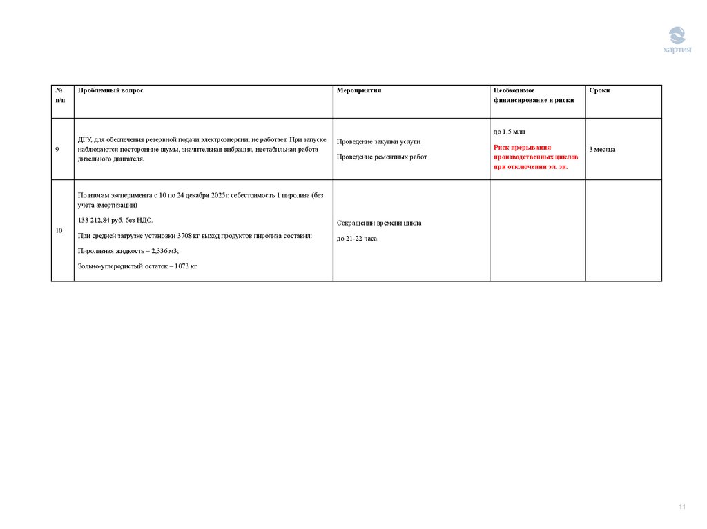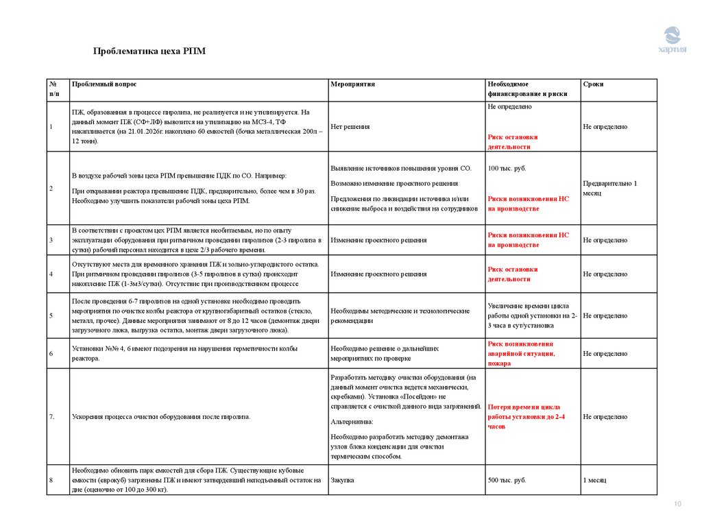 1. Работа цеха в импульсном режиме (8 часов работы, далее 4 часа чистка, обслуживание), работа в режиме 365/24