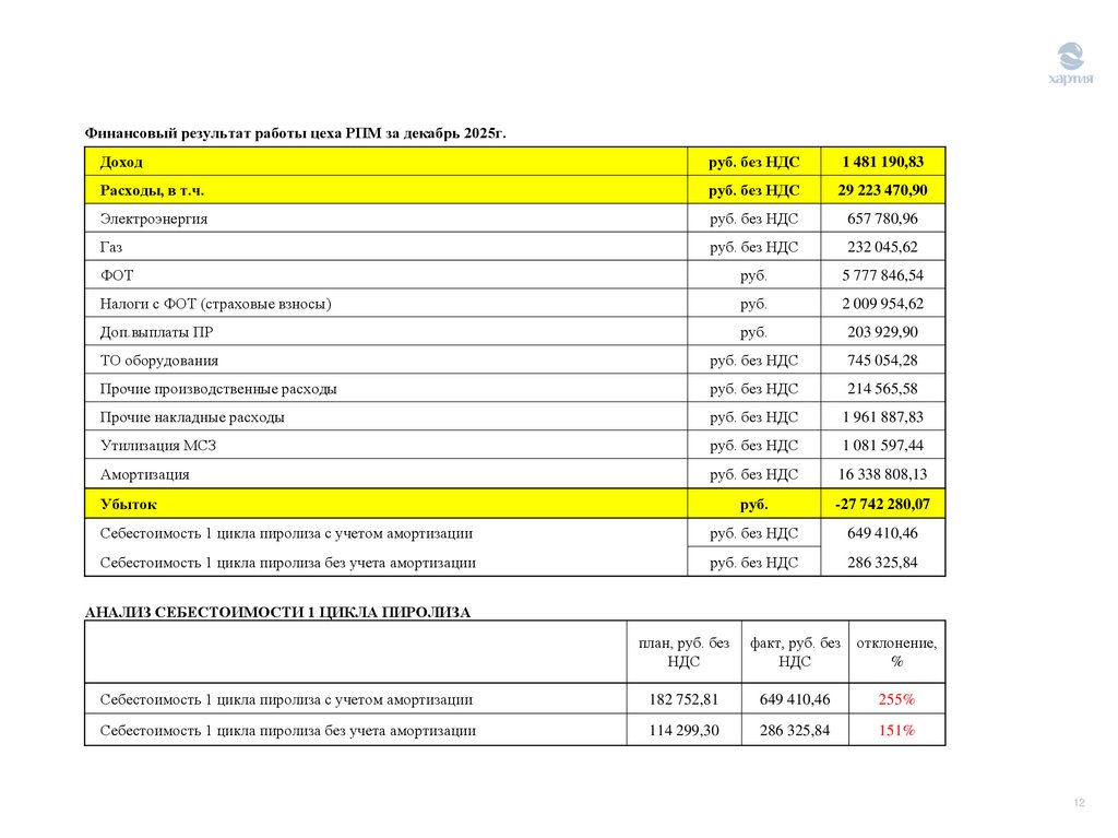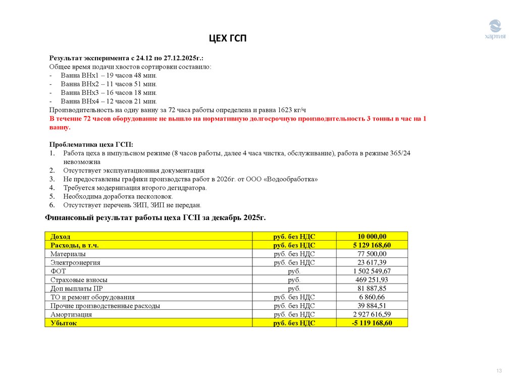 Финансовый результат работы цеха ГСП за декабрь 2025г.