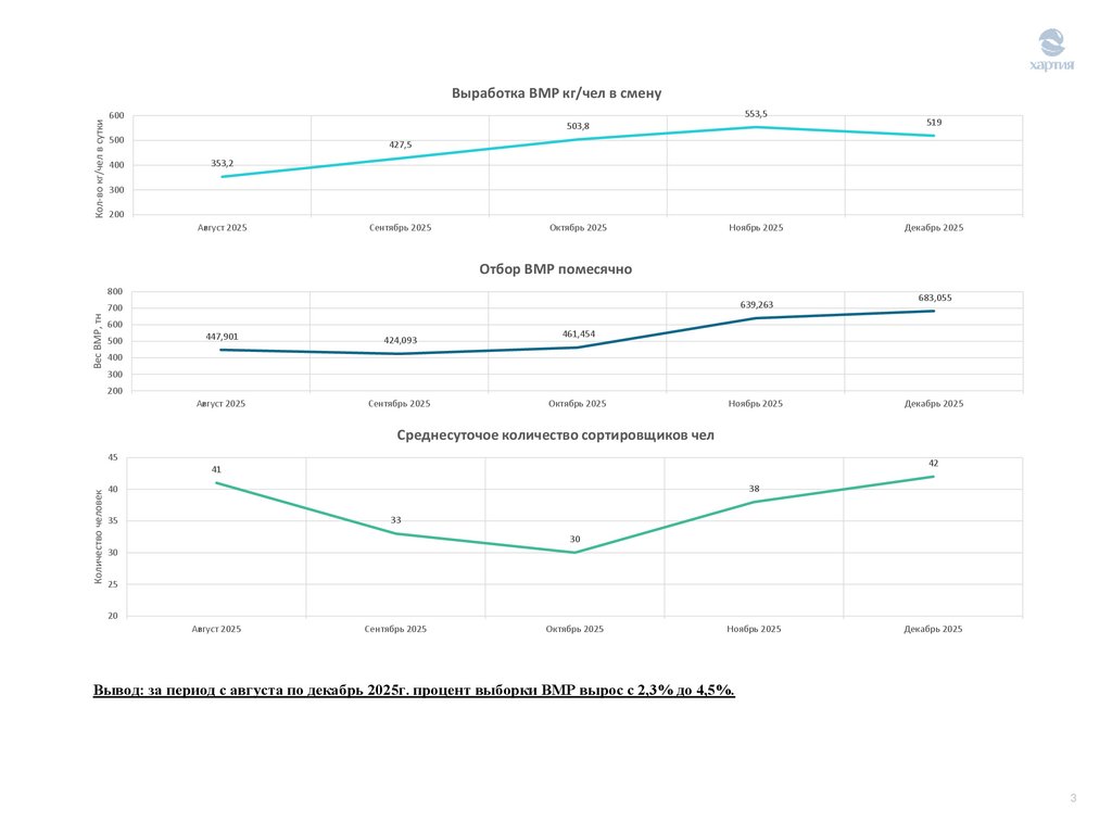 Вывод: за период с августа по декабрь 2025г. процент выборки ВМР вырос с 2,3% до 4,5%.