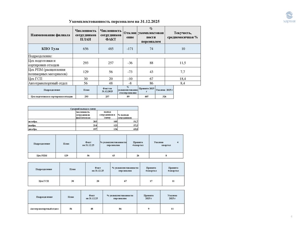 Укомплектованность персоналом на 31.12.2025%