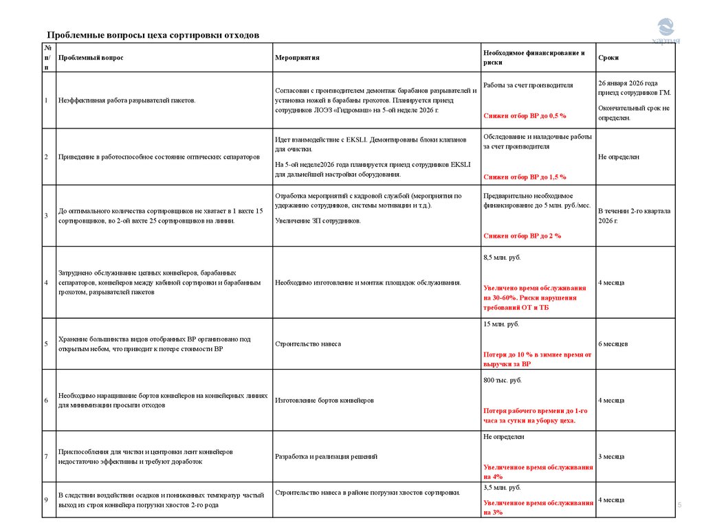 4. Требуется модернизация второго дегидратора.