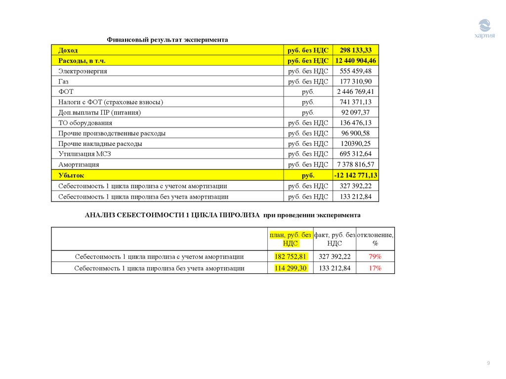 АНАЛИЗ СЕБЕСТОИМОСТИ 1 ЦИКЛА ПИРОЛИЗА
