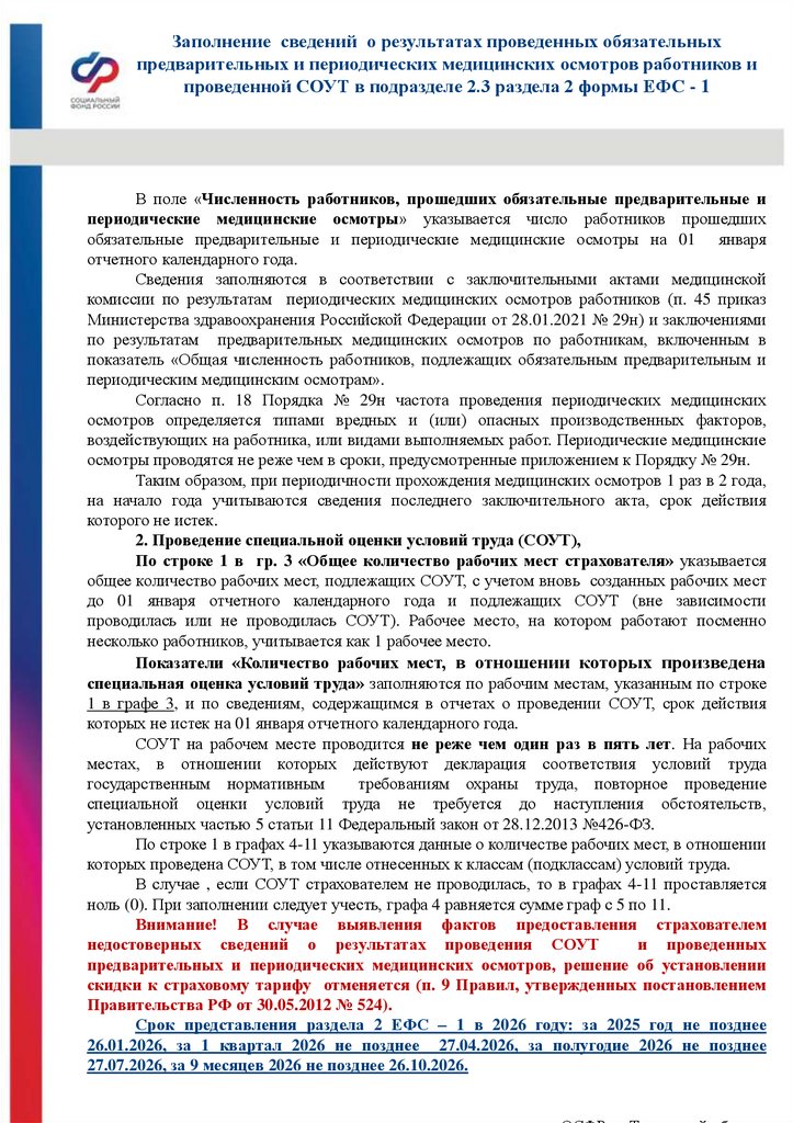 Срок представления раздела 2 ЕФС – 1 в 2026 году: за 2025 год не позднее