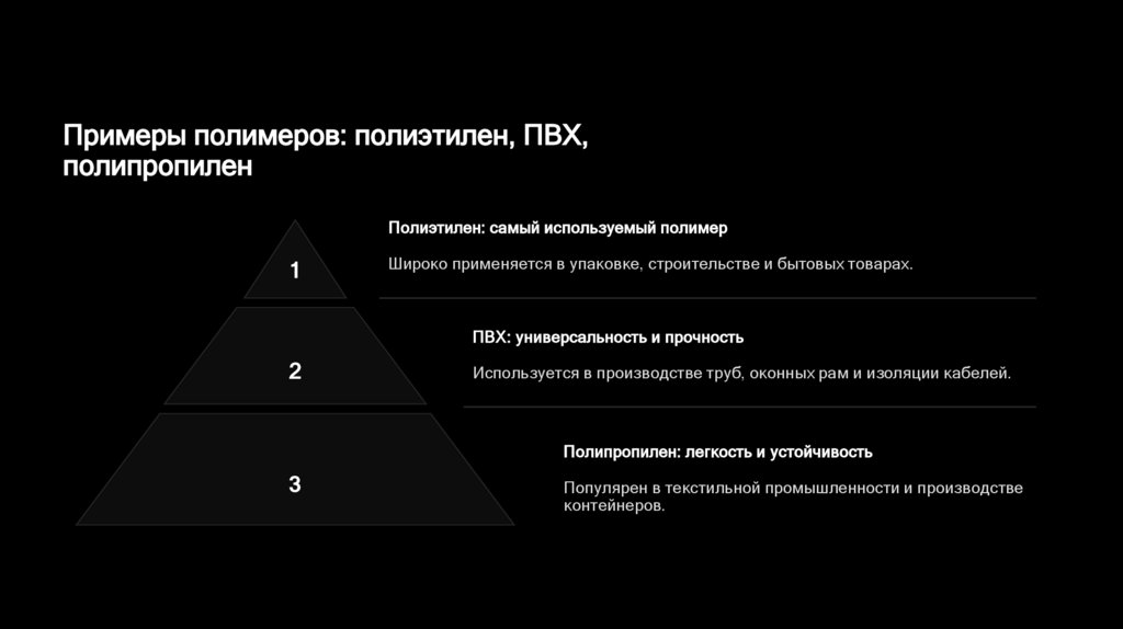 Примеры полимеров: полиэтилен, ПВХ,полипропилен
