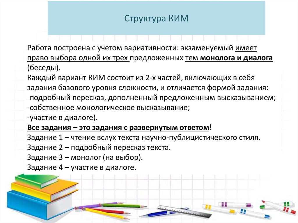 Структура КИМРабота построена с учетом вариативности: экзаменуемый имеет