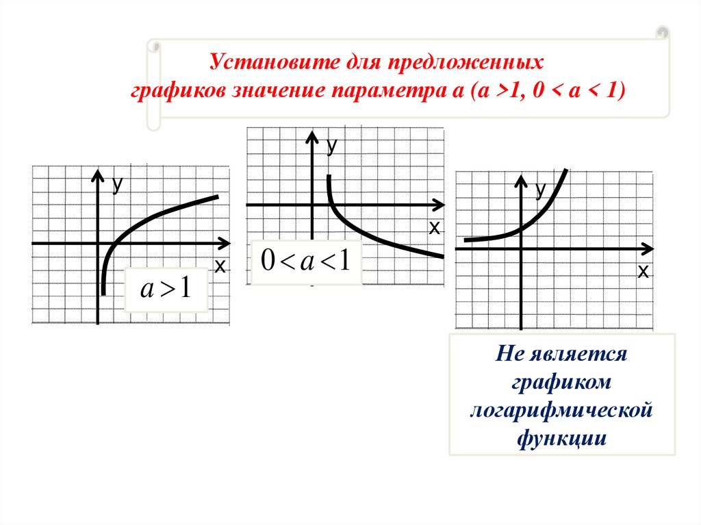Установите для предложенныхграфиков значение параметра a (a >1, 0 < a < 1)