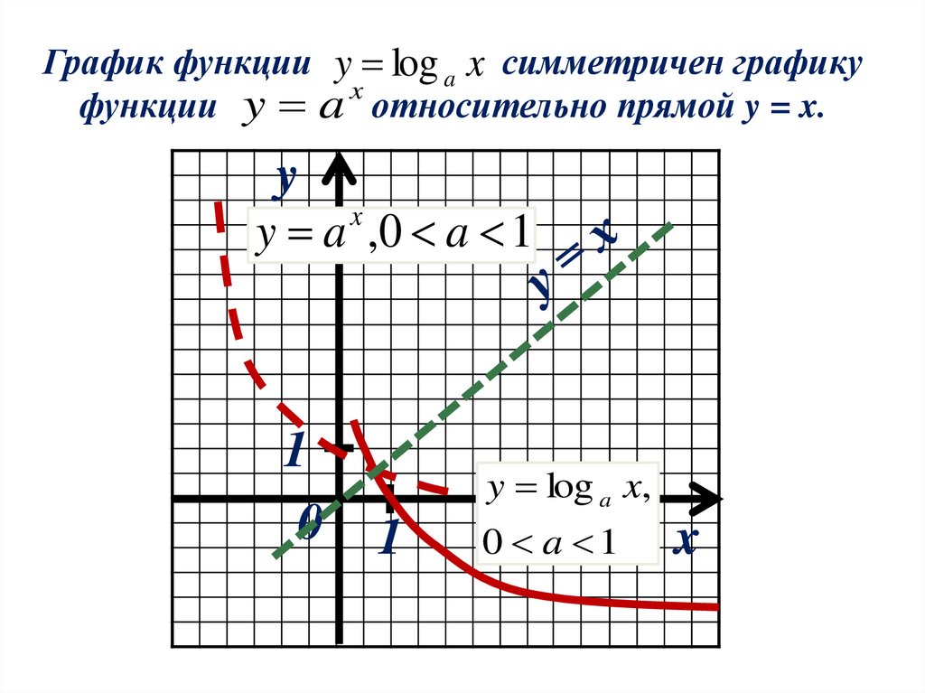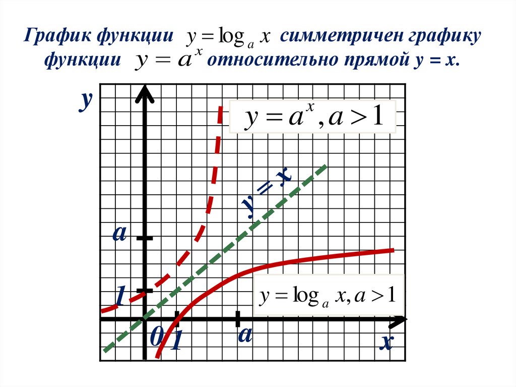 График функции y log a x симметричен графикуx