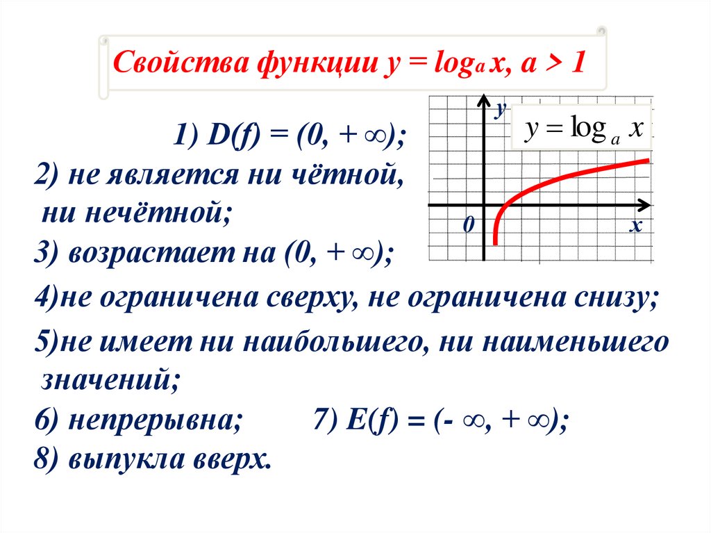 1. Логарифмическая функция, ее свойства и график