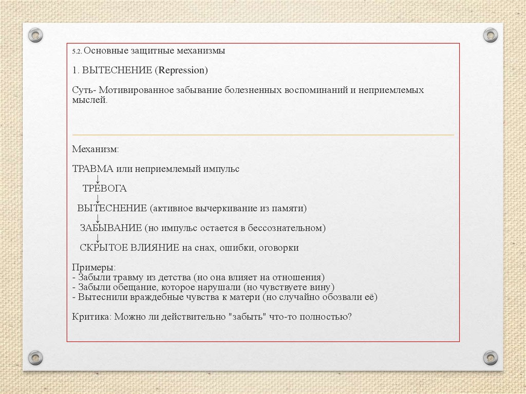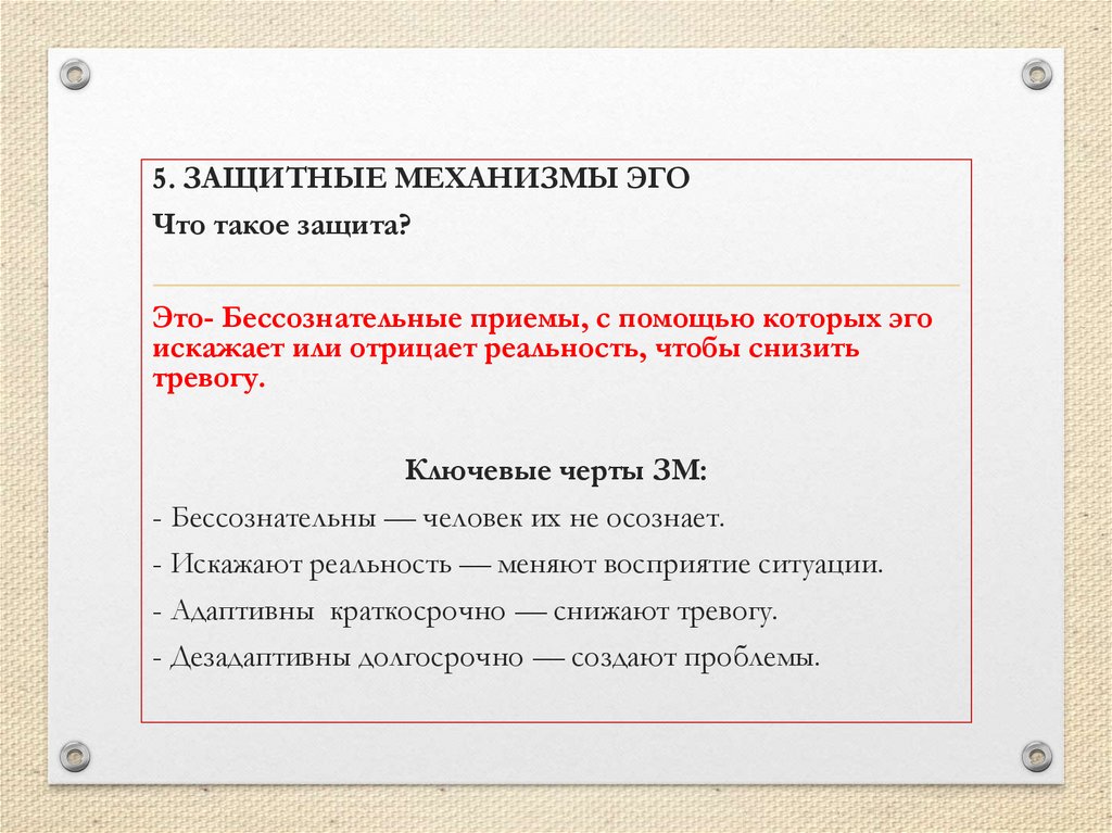 3.Психосексуальное развитие (обзор)4.Защитные механизмы эго