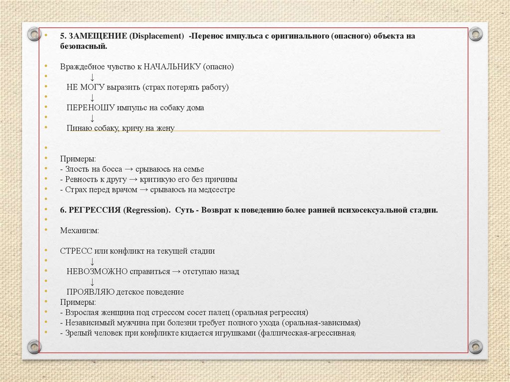 6. РЕГРЕССИЯ (Regression). Суть - Возврат к поведению более ранней психосексуальной стадии.