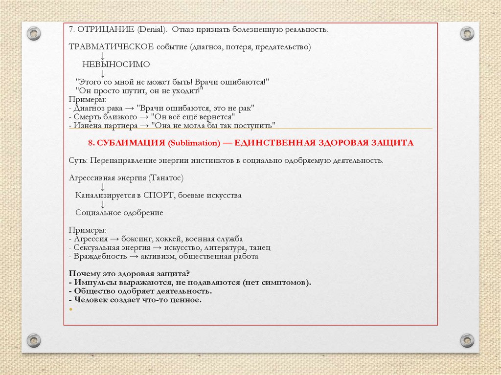 7. ОТРИЦАНИЕ (Denial). Отказ признать болезненную реальность.ТРАВМАТИЧЕСКОЕ событие (диагноз, потеря, предательство)