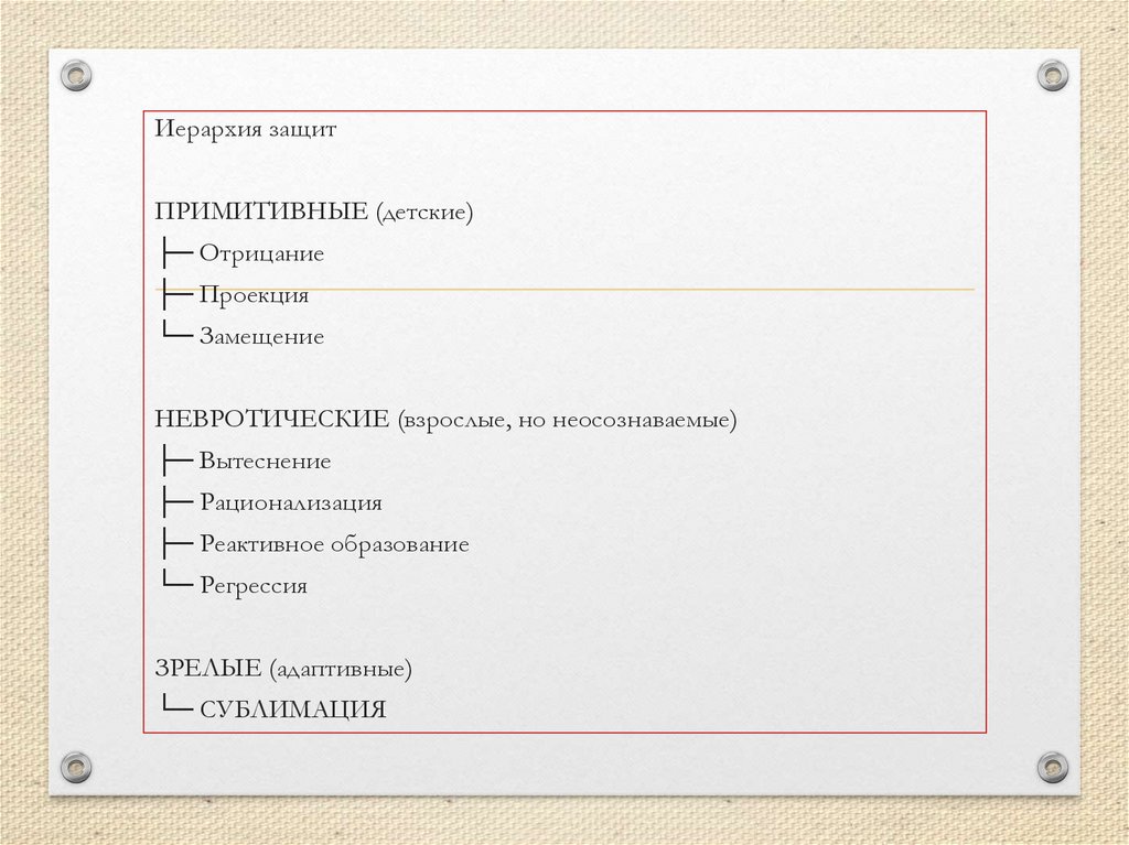Иерархия защитПРИМИТИВНЫЕ (детские)