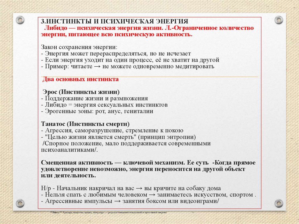 3.ИНСТИНКТЫ И ПСИХИЧЕСКАЯ ЭНЕРГИЯЛибидо — психическая энергия жизни. Л.-Ограниченное количество