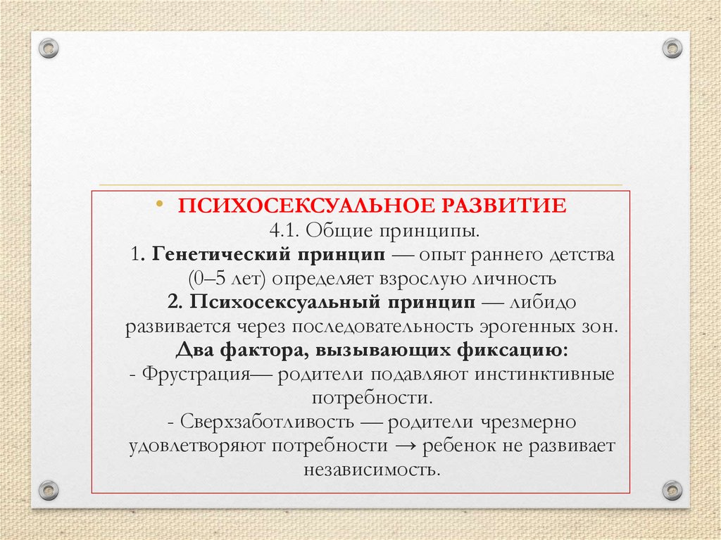 • ПСИХОСЕКСУАЛЬНОЕ РАЗВИТИЕ4.1. Общие принципы.