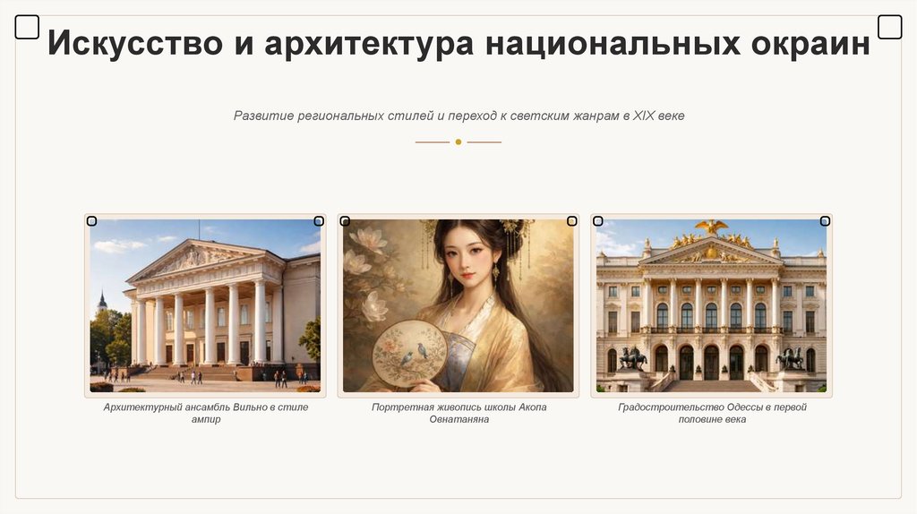 Искусство и архитектура национальных окраинРазвитие региональных стилей и переход к светским жанрам в XIX веке