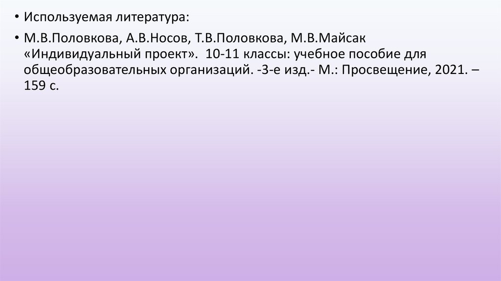 • Используемая литература:• М.В.Половкова, А.В.Носов, Т.В.Половкова, М.В.Майсак