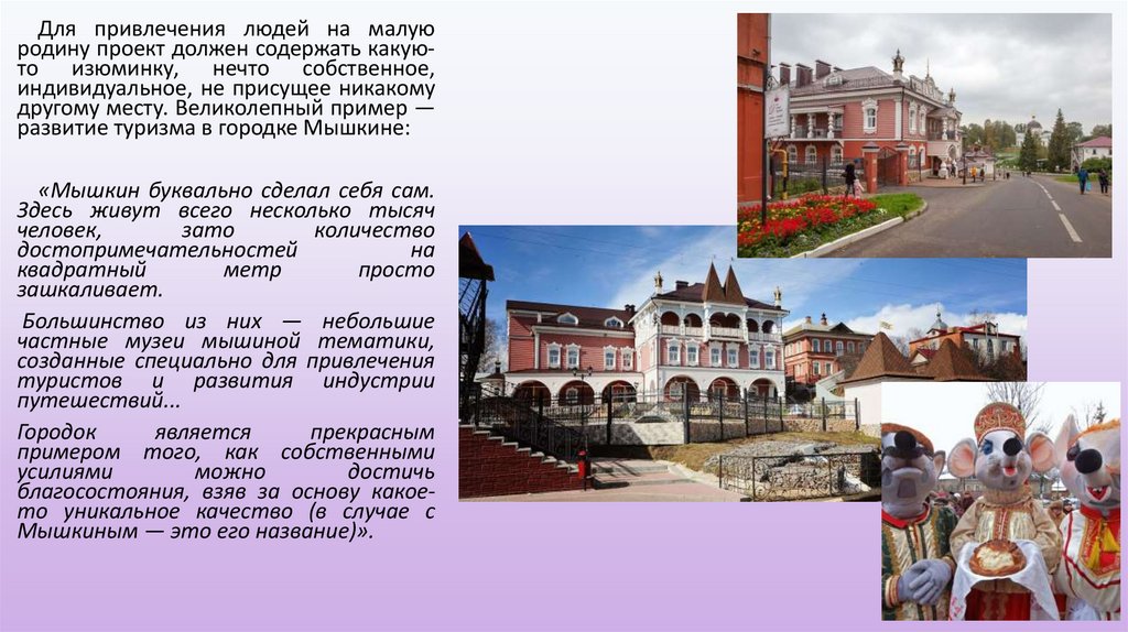 Проект предполагает не просто сбор информации, ознакомление е историческим прошлым и современной жизнью, а, например, участие в создании