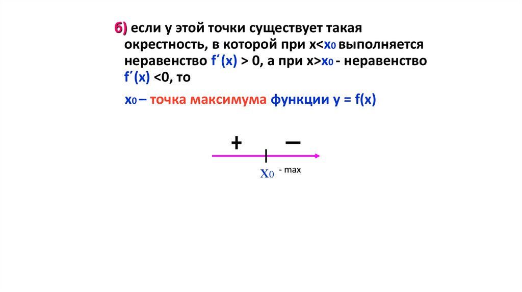б) если у этой точки существует такаяокрестность, в которой при х<х0 выполняется