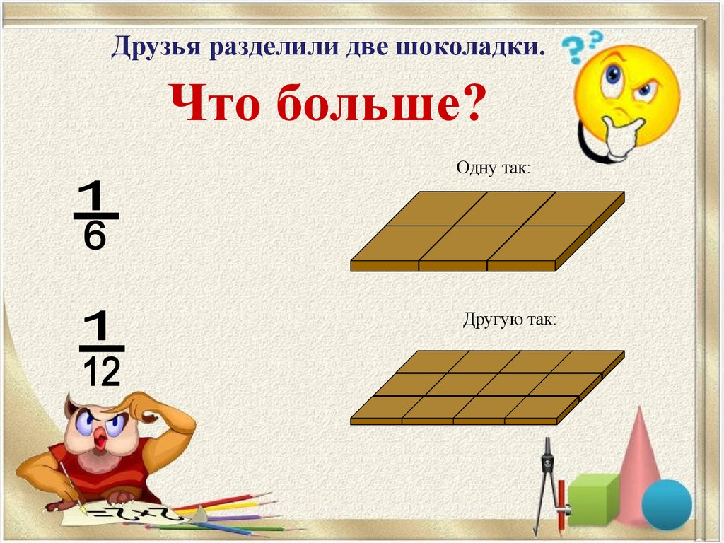 Друзья разделили две шоколадки.Что больше?