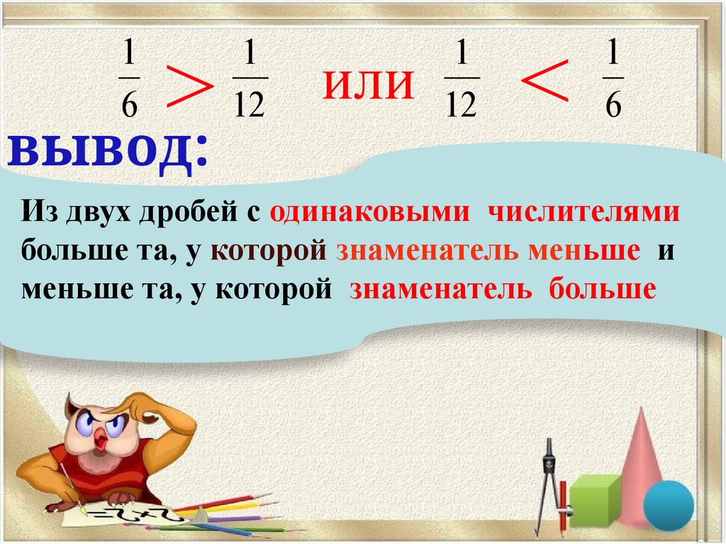 ПРАВИЛОИз двух дробей с одинаковым числителем: