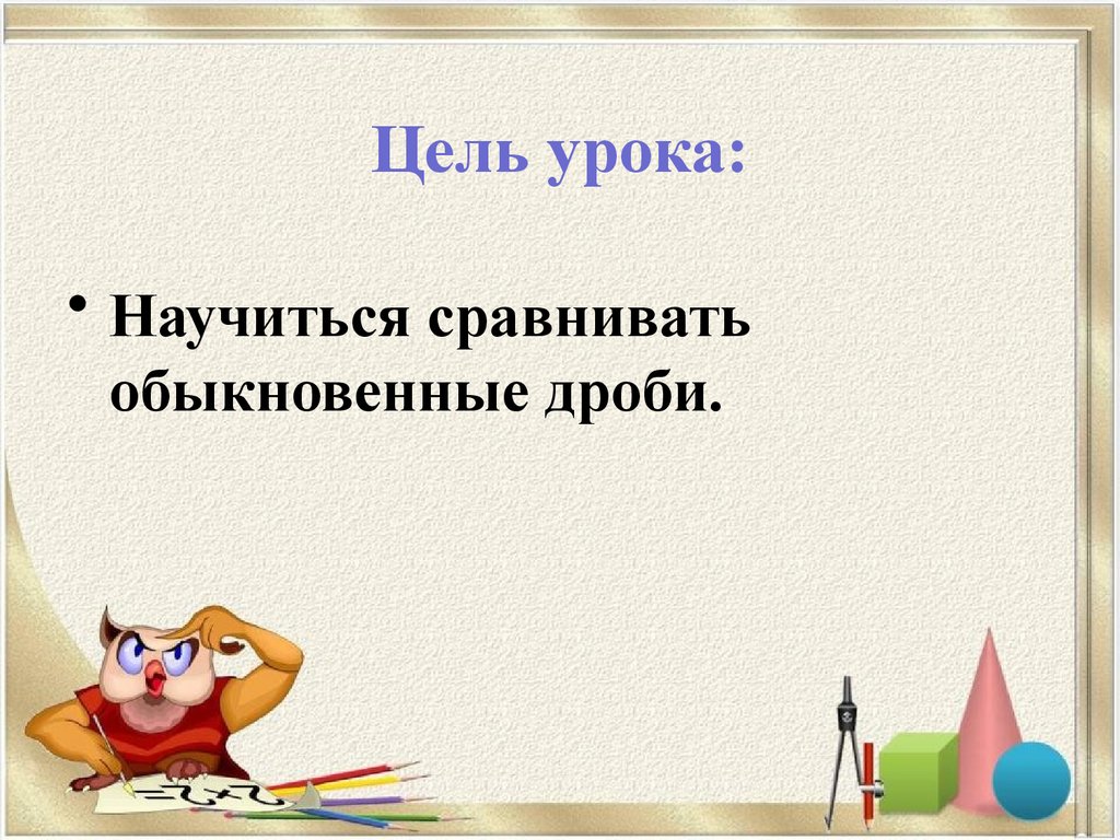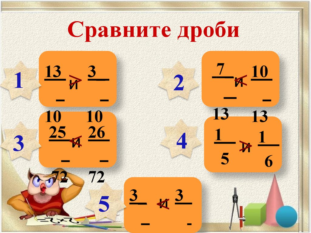 открытый урок Сравнение дробей 5 кл