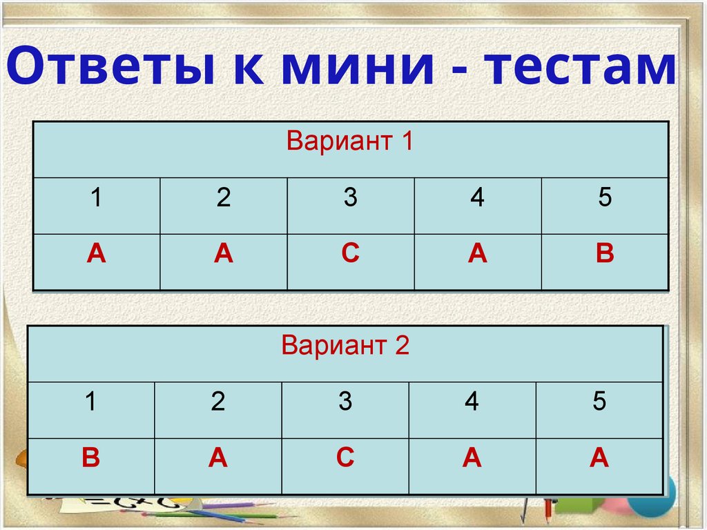 Ответы к мини - тестамВариант 1