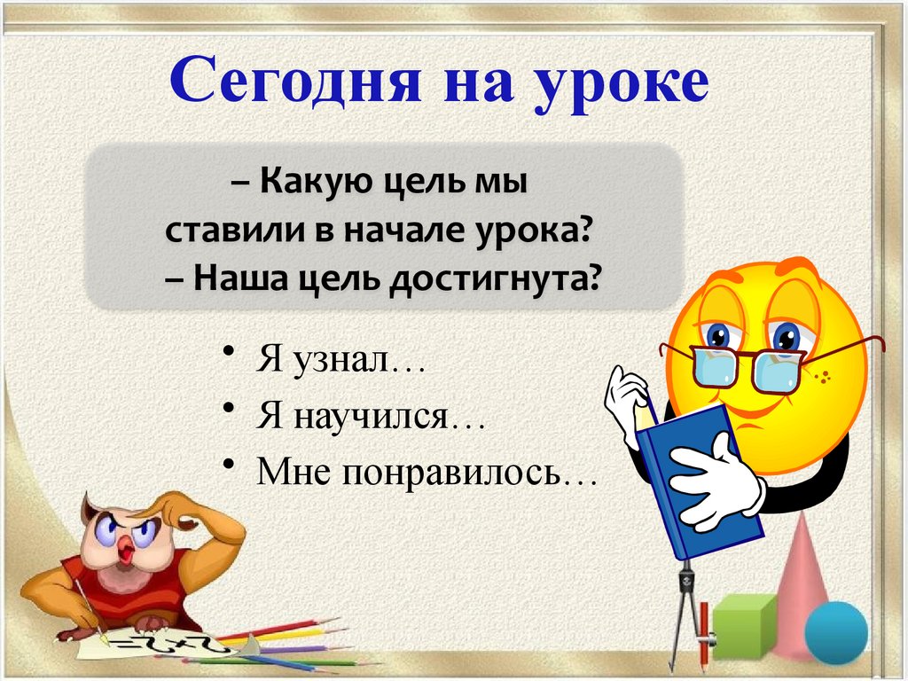 Сегодня на уроке– Какую цель мы