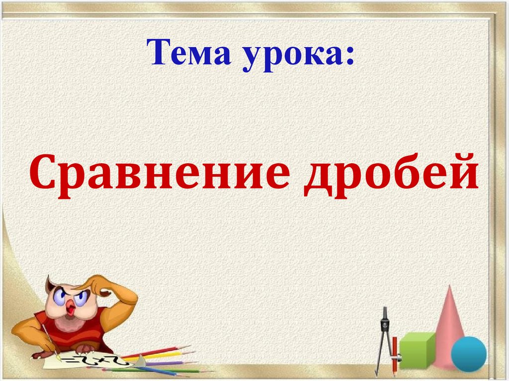 Тема урока:Сравнение дробей