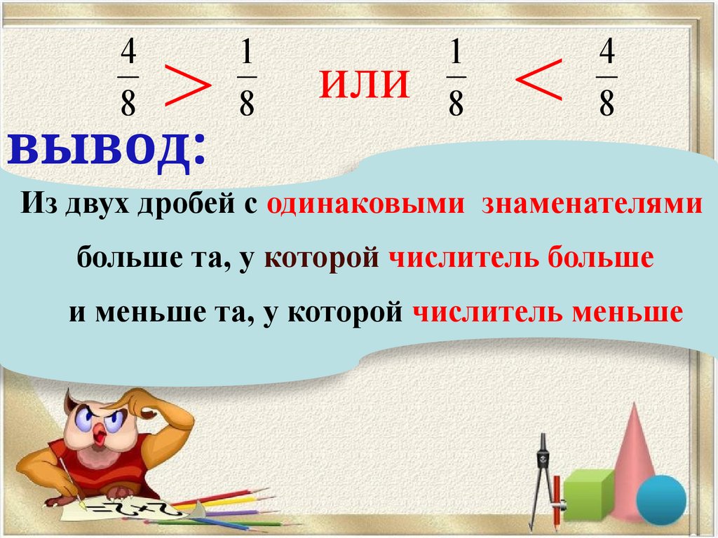 ПРАВИЛОИз двух дробей с одинаковым знаменателем: